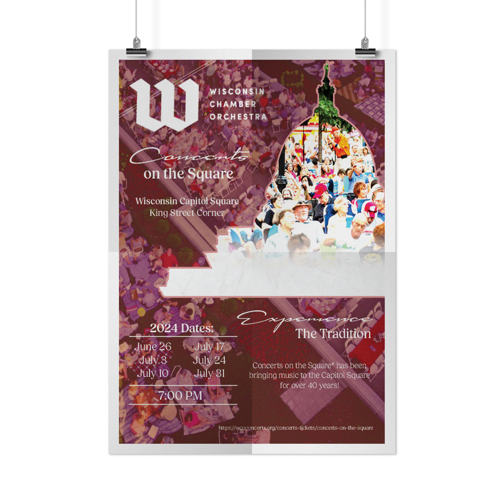 A series of physical and digital ads designed for the Wisconsin Chamber Orchestra's summer concert series in Madison, WI. Designs were created using A blend of Adobe Photoshop, Illustrator, and InDesign.