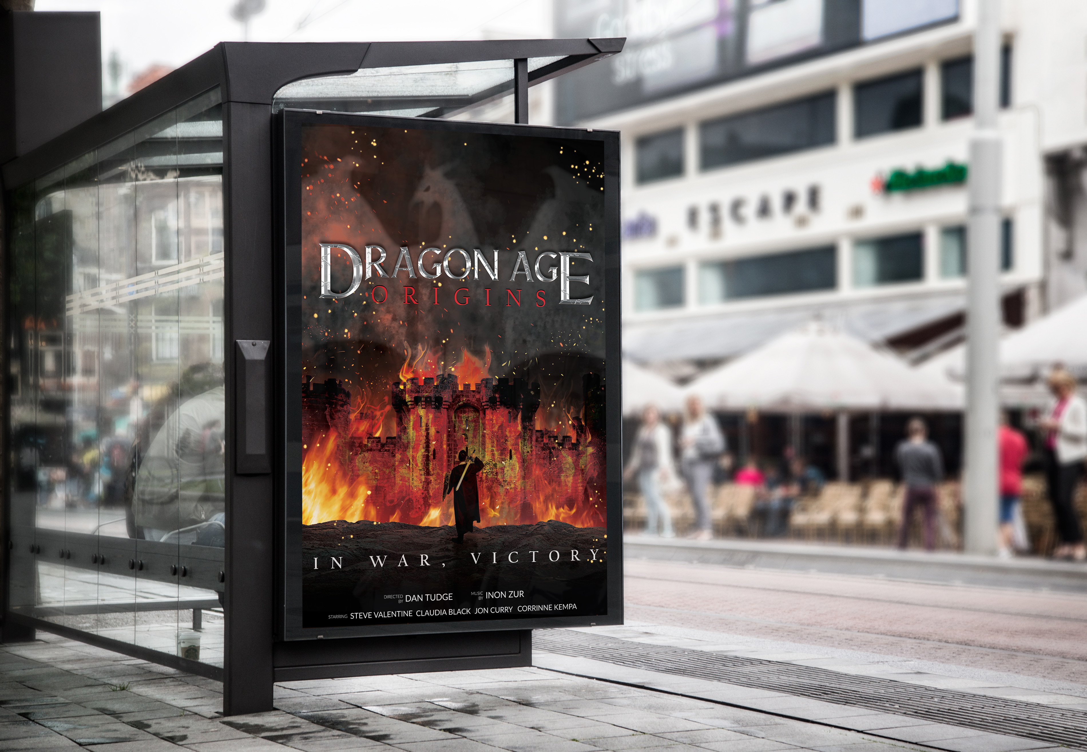 This design was for an assignment to either redesign a poster for an existing movie, or create one for a movie that does not yet exist. I chose to create a new poster based on the video game Dragon Age: Origins. The design was achieved with a blend of Adobe Illustrator and Photoshop, using original photos and illustrations as well as stock images.