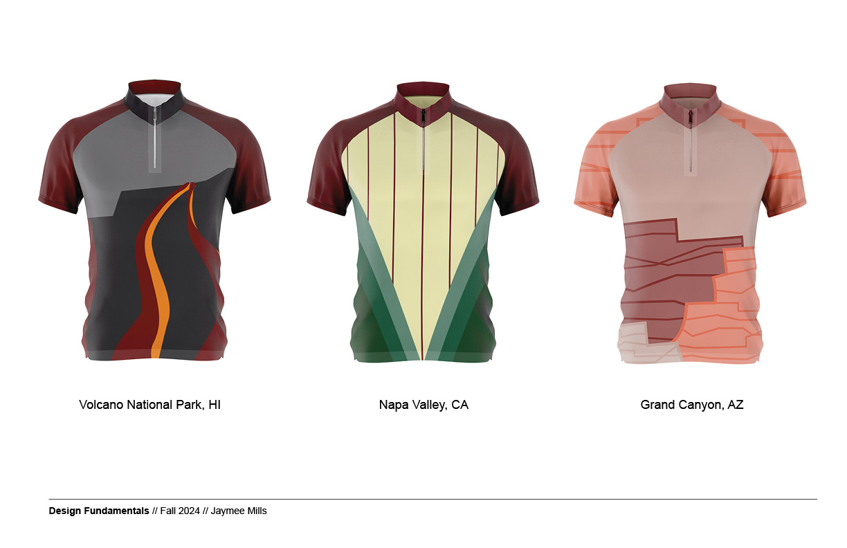 These bike jerseys were created as a sample design for a mock cycling tour. I wanted the jerseys to be simple, but still pay a reconizable tribute to the towns for which they were designed.